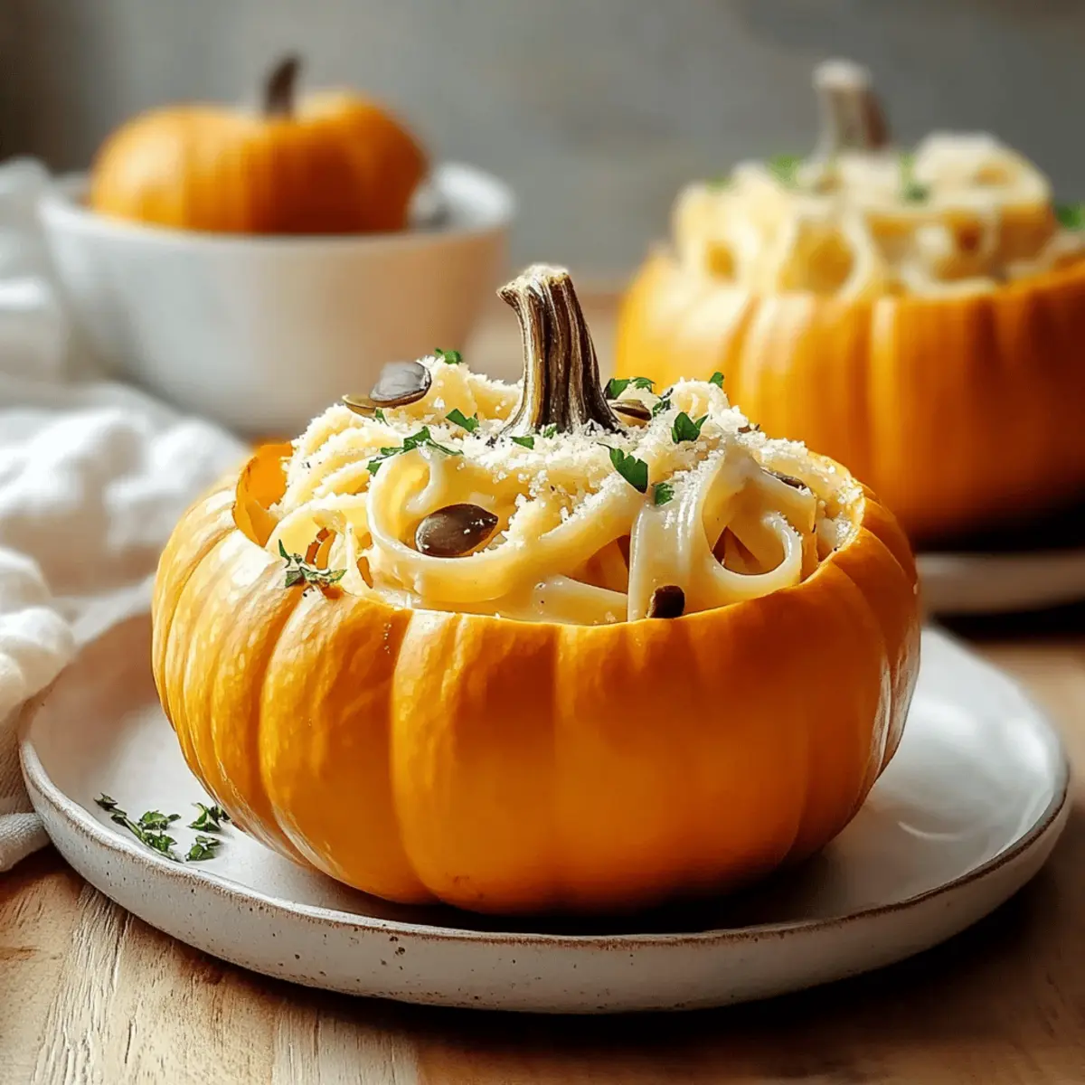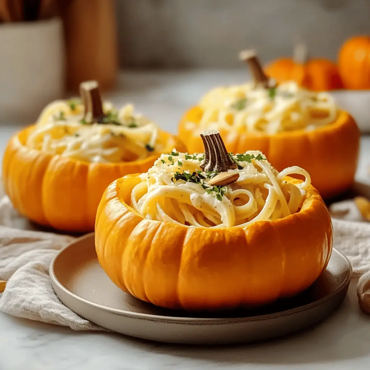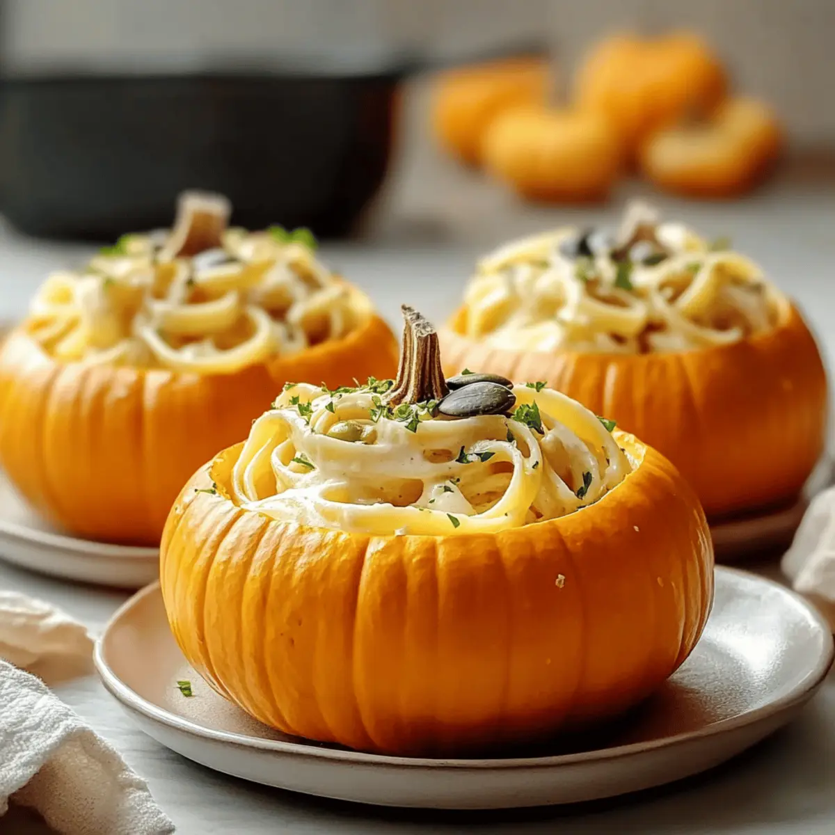 Whimsical presentation: Serving fettuccine in mini pumpkins makes each plate a work of art, perfect for impressing guests.