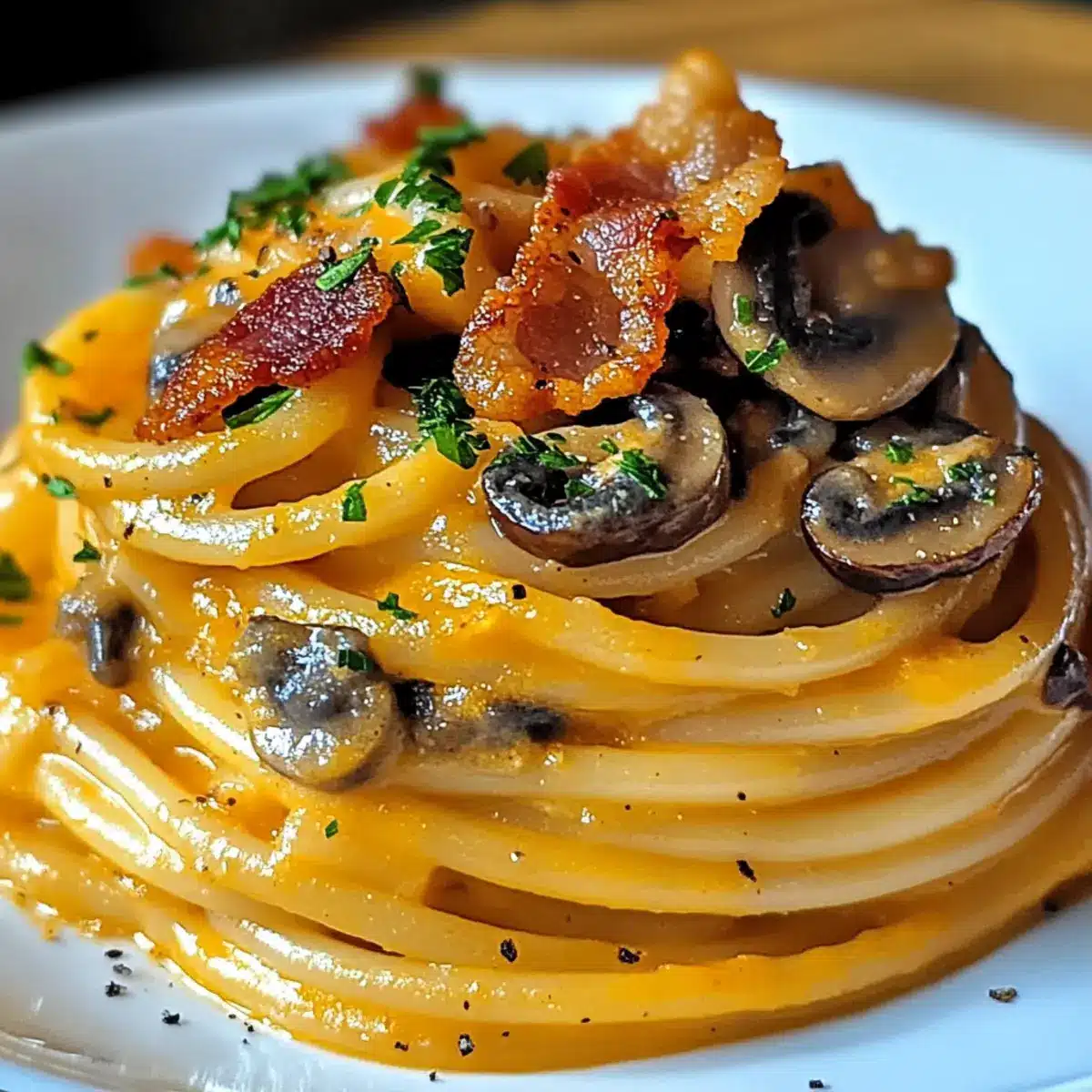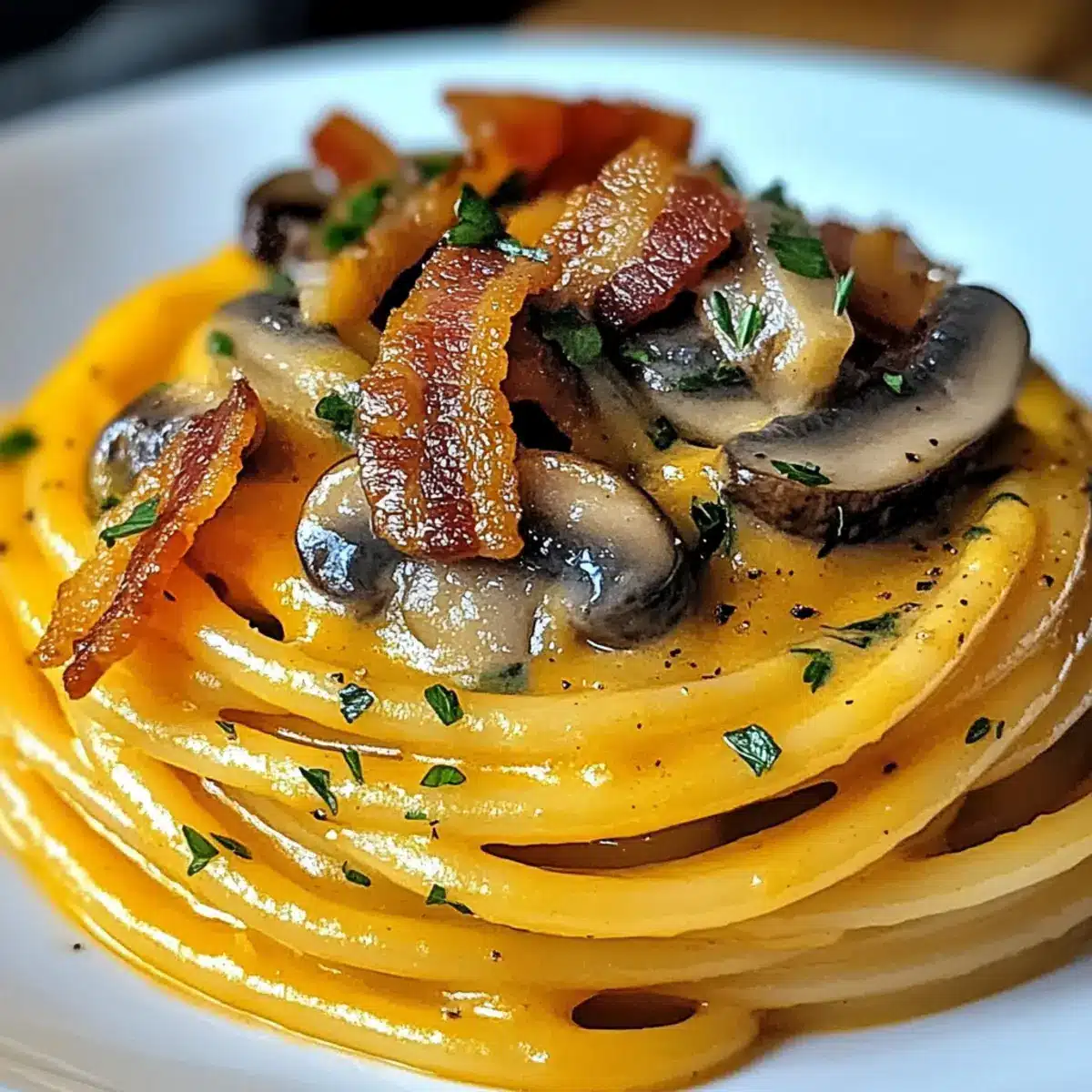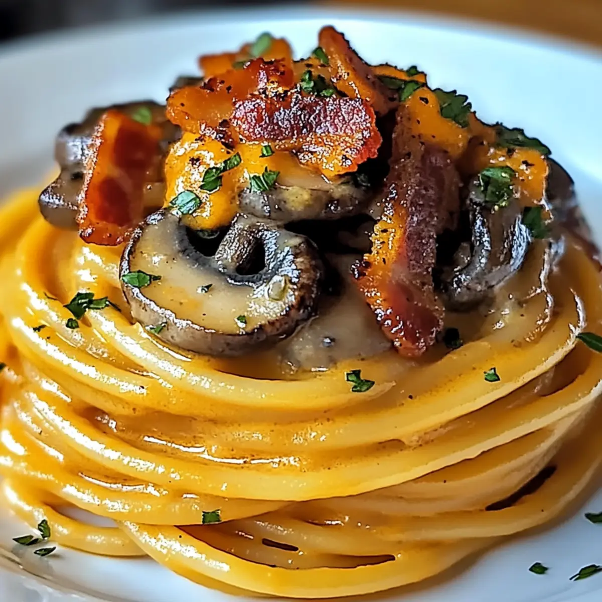 Creamy Pumpkin & Mushroom Spaghetti with Crispy Bacon Bliss