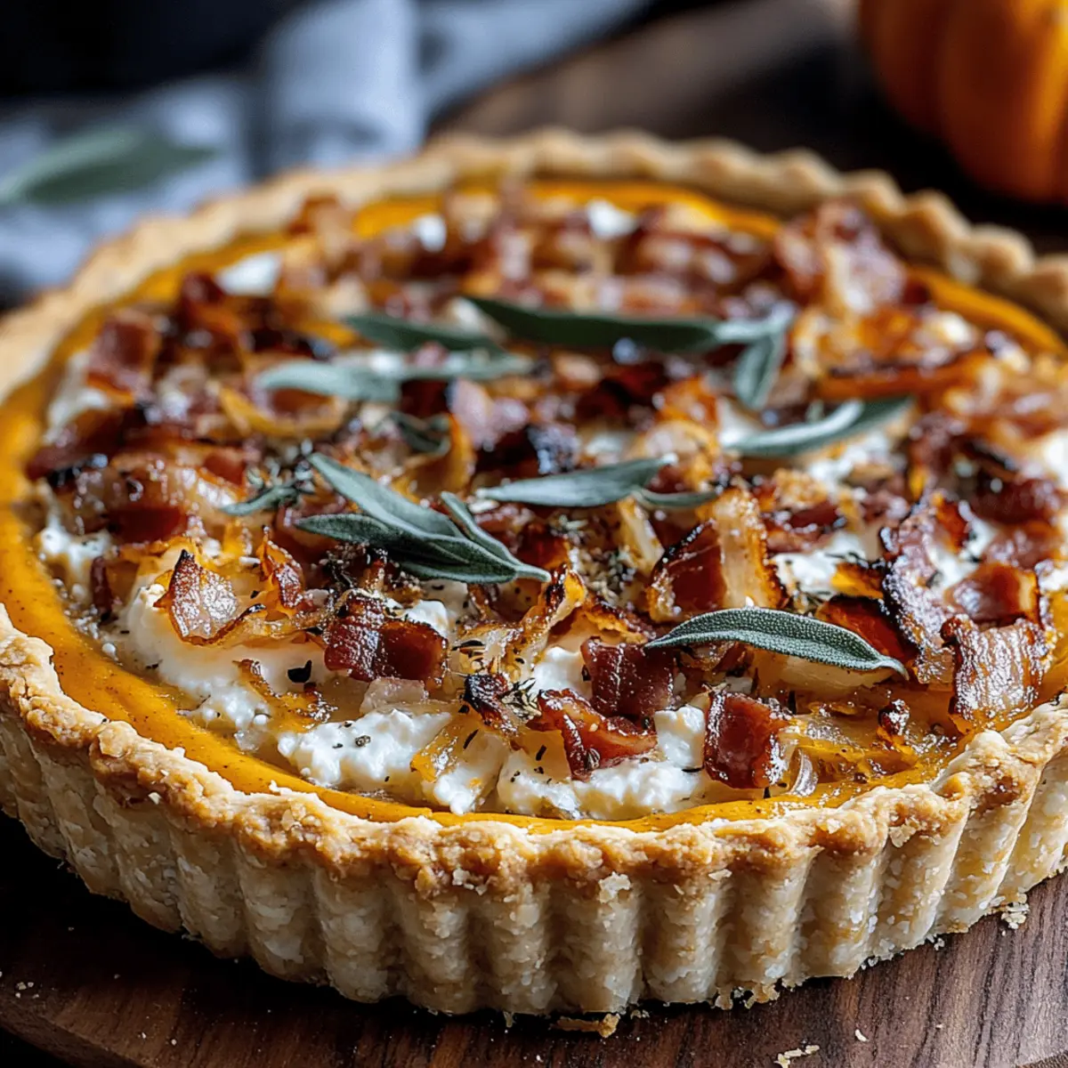 Pumpkin, Ricotta & Caramelized Onion Tart with Bacon and Sage Bliss