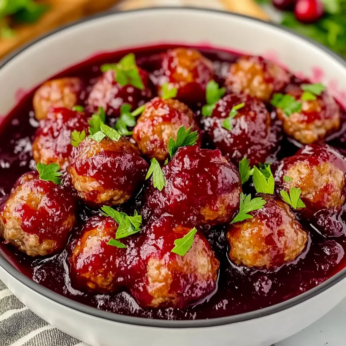 These Quick Cranberry Meatballs are perfect for meal prep enthusiasts looking to simplify their holiday gatherings! You can prepare the meatball mixture and form the meatballs up to 24 hours in advance. Simply cover them tightly and refrigerate until ready to bake. Additionally, you can make the sauce ahead of time and store it in an airtight container in the fridge for up to 3 days. When you’re ready to serve, just bake the meatballs until cooked through and then toss them in the premade sauce before heating gently. This ensures your meatballs remain juicy and flavorful, ready to impress your guests without any last-minute stress!