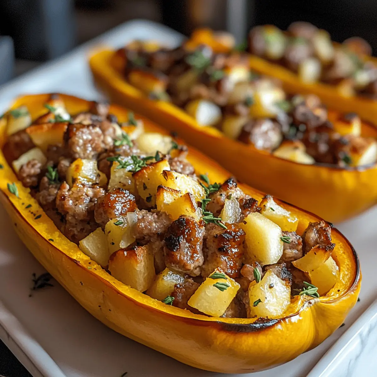 These Sausage and Apple Stuffed Honeynut Squash are perfect for busy weeknights or gatherings! You can prepare the squash and stuffing separately up to 24 hours in advance. Roast the honeynut squash, let it cool, and store it airtight in the fridge. Prepare the sausage-apple filling and refrigerate it as well. When it’s time to serve, simply reheat the filling in a pan until warmed through, then fill the squash and bake for 10-15 minutes at 400°F (200°C) until everything is heated and lovely. This not only saves you time but ensures the dish is just as delicious as if made fresh!