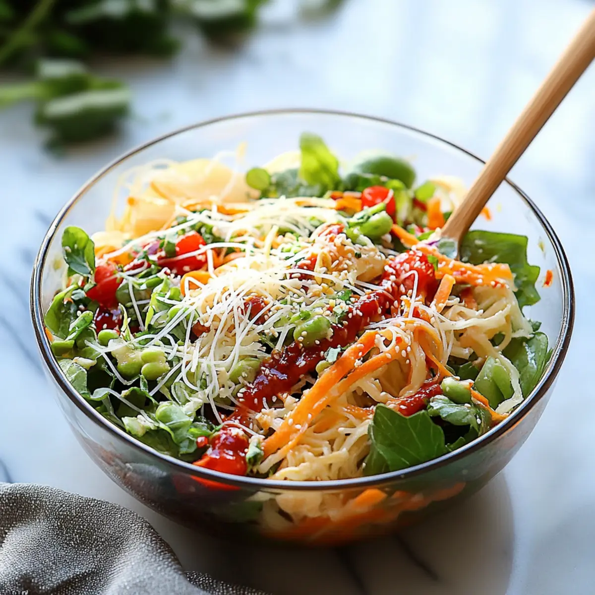 - Rice Vermicelli Noodles – Provides the salad’s base and texture; try zucchini noodles for a low-carb twist.
