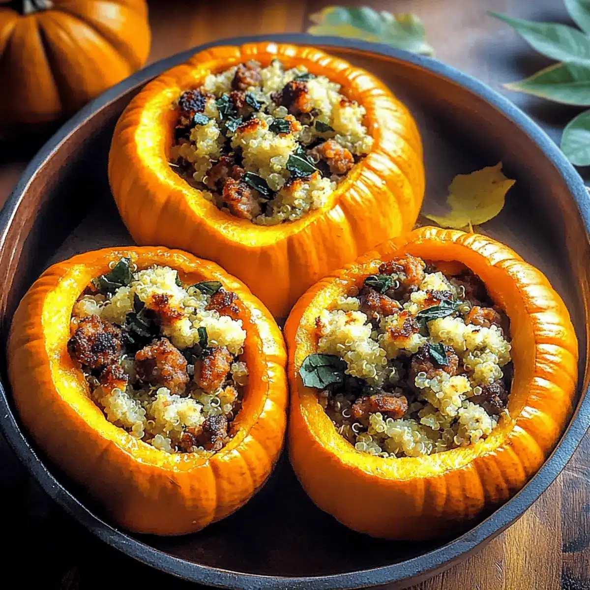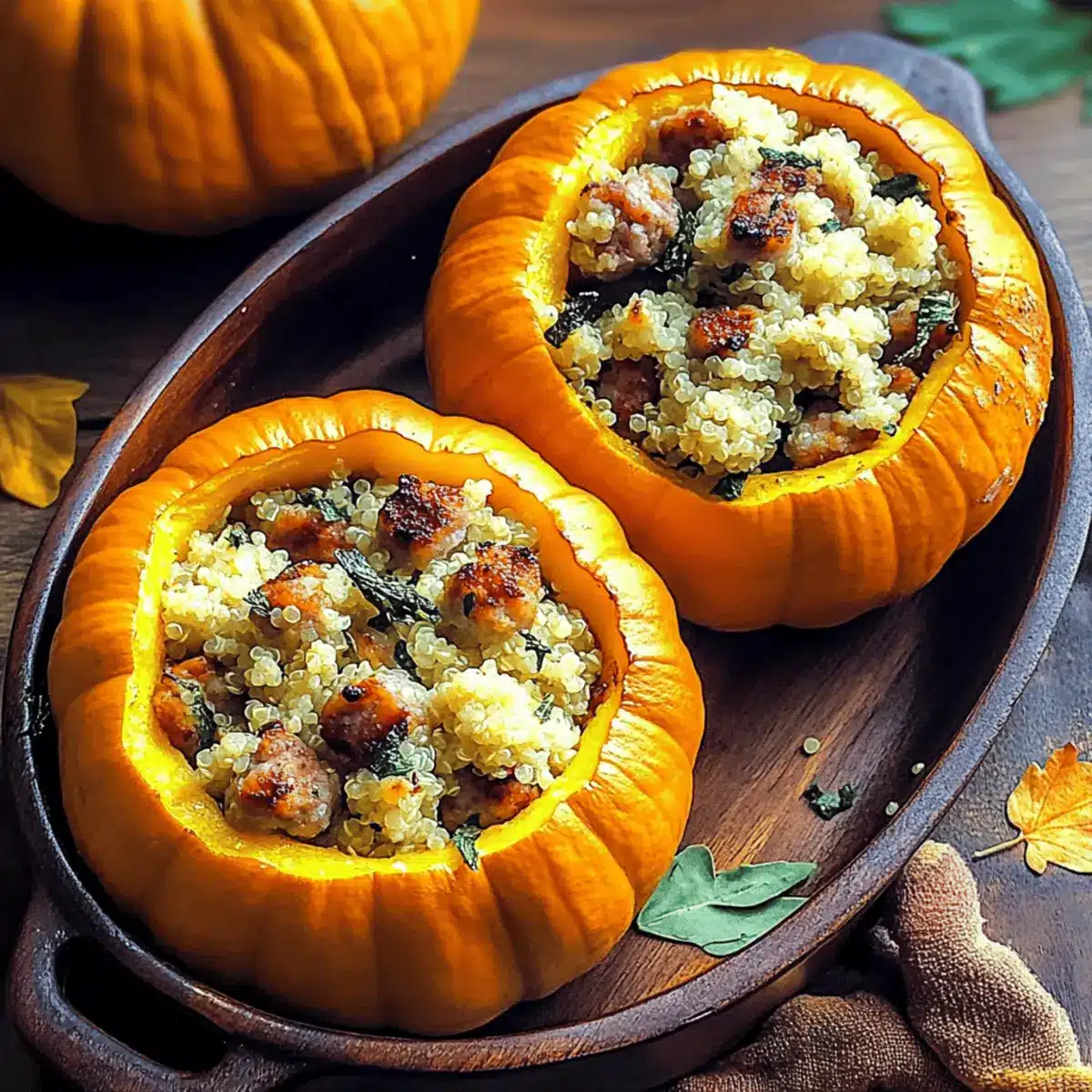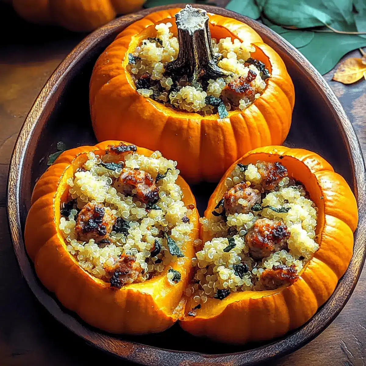 • Pre-Cook Fillings: Consider cooking the quinoa and sausage together beforehand; this builds flavor and makes it easier to stuff the pumpkins.