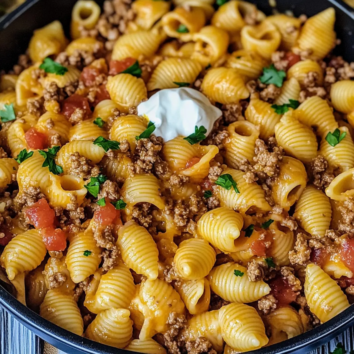 Spoon the cheesy taco pasta mixture into bowls, serving hot for that ultimate comfort food experience. Feel free to garnish with additional cheese, crushed tortilla chips, a dollop of sour cream, and fresh parsley to elevate both the taste and presentation as you enjoy your savory creation!