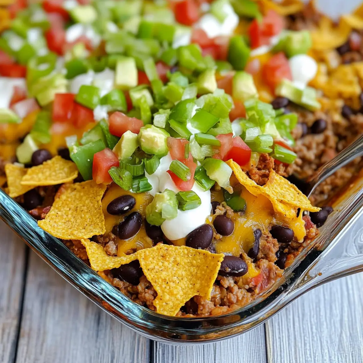 • Keep It Crunchy: To avoid soggy Fritos, add them on top right before serving rather than baking them, preserving their delightful crunch!