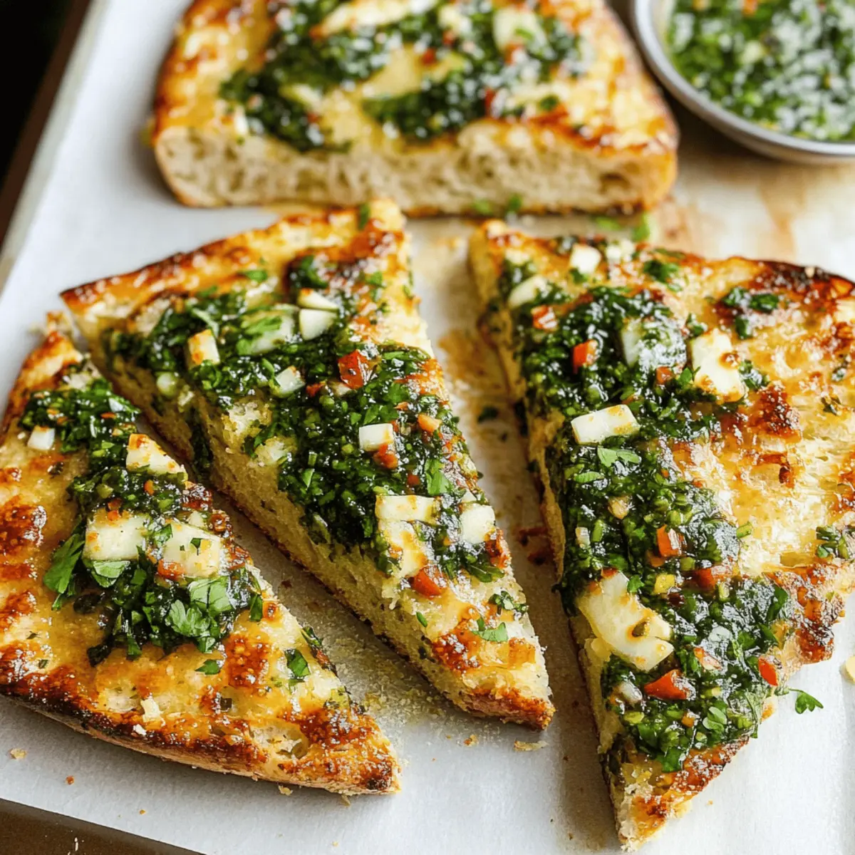 Begin your culinary journey by preheating your oven to 400°F (200°C). This ensures that your Zesty Chimichurri Garlic Bread will cook evenly, achieving that perfect crispy exterior while remaining fluffy inside. While the oven warms up, gather your ingredients and equipment, including a baking sheet and aluminum foil.